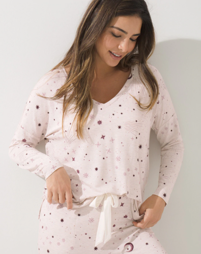 Short Sleeve Notch Collar Pajama Top